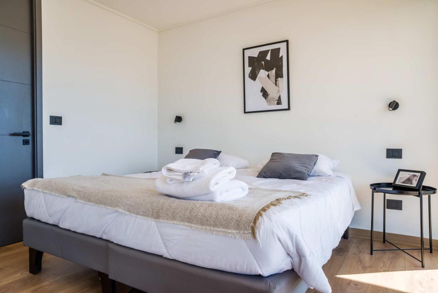 The spacious apartment has 2 bedrooms, a living room with a TV, an equipped kitchen, and 2 bathrooms with a bath and a hair dryer. Towels and bed linen are offered in the apartment.