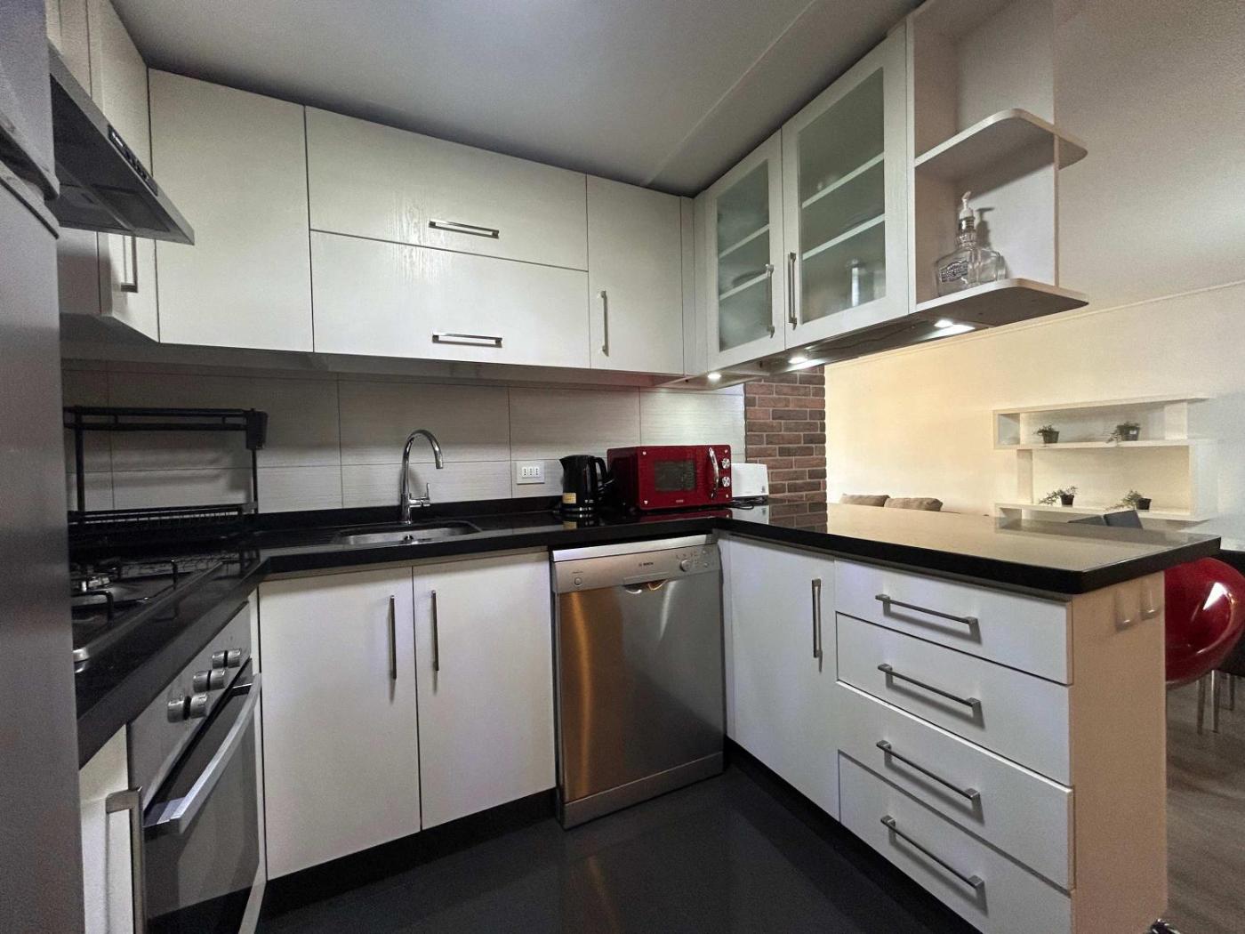 Remodelado a pasos de todo en El Golf MUT Costanera Center features 1 bedroom, a fully equipped kitchen with an oven and a microwave, a washing machine and 2 bathrooms with a hair dryer. A TV is offered.